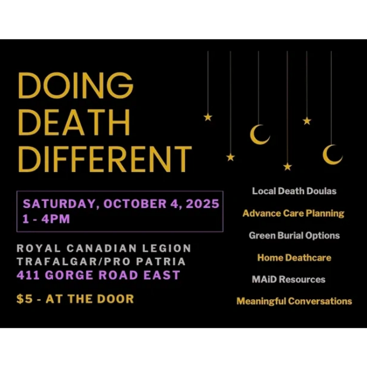 Exhibitors include: green burial options, willow casket maker and display, ceremonialists, death doulas, pet, grief, and caregiver resources, and information about MAiD, Cannabis and psychedelics.